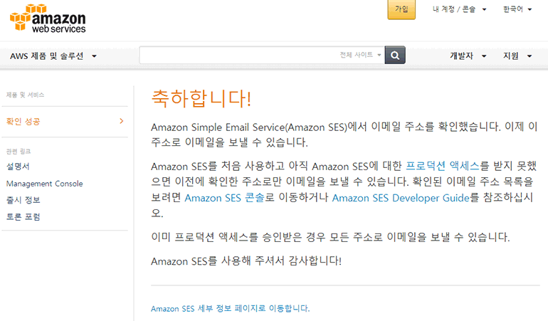 그림 27-5 SES 이메일 주소 인증 메일 발송