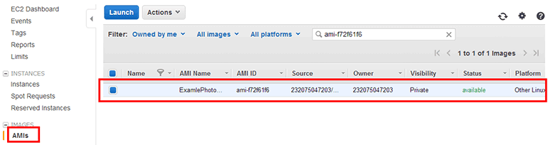 Node.js와 필요한 모듈 설치가 완료되었습니다. '19.1 Auto Scaling에 사용할 AMI 생성하기'를 참조하여 AMI를 생성합니다. AMI의 이름은 ExamplePhotoAutoScalingAMI로 설정합니다.