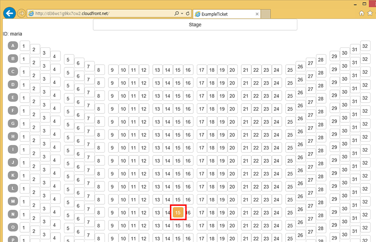 두 번째 웹 브라우저의 화면을 보면 실시간으로 L-15 좌석이 오랜지색으로 바뀌고, 예약 상태가 됩니다. 예약 상태에서는 다른 사람이 예약하거나 결제할 수 없습니다.