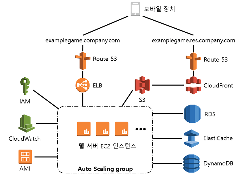- 게임 로직은 EC2 인스턴스를 사용하고, ELB와 Auto Scaling을 사용하여 부하를 분산하고, 게임 서버를 확장합니다.