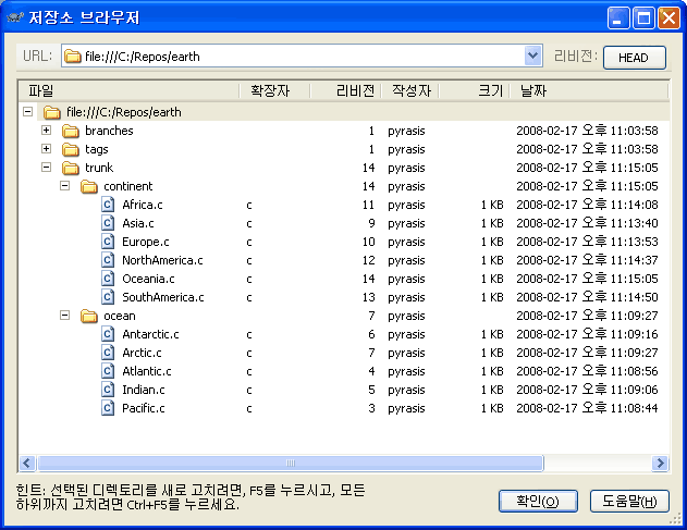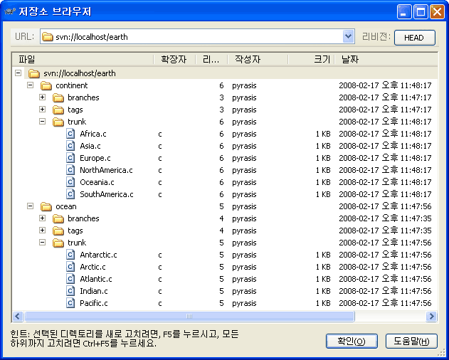 아래와 같은 화면이 나오면 Subversion 저장소로 변환이 성공적으로 완료된 것입니다.