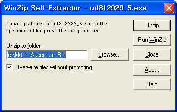 4. C:\kktools\userdump8.1\x86 디렉터리로 이동하여 setup.exe를 실행합니다. (64비트 환경이라면 C:\kktools\userdump8.1\x64)