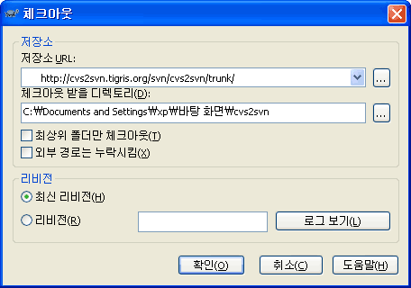 그림 A-73 cvs2svn 체크아웃