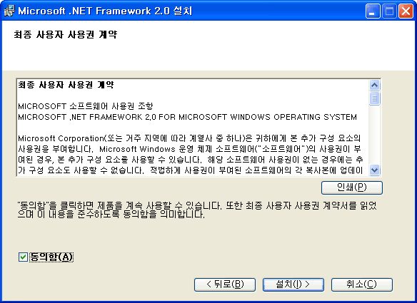 그림 3-1 .NET Framework 2.0 설치 시작 -