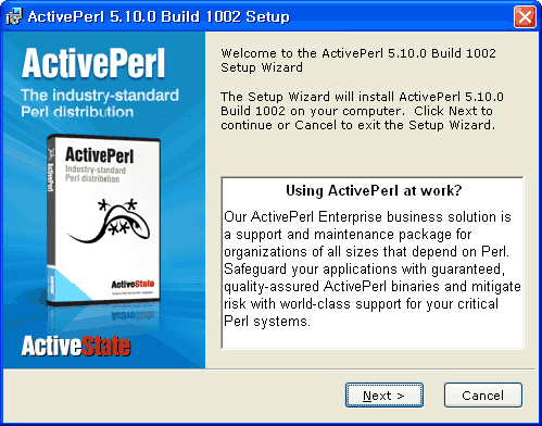 ActivePerl 설치 파일을 다운로드하여 실행시킵니다. Next를 눌러 넘어갑니다.