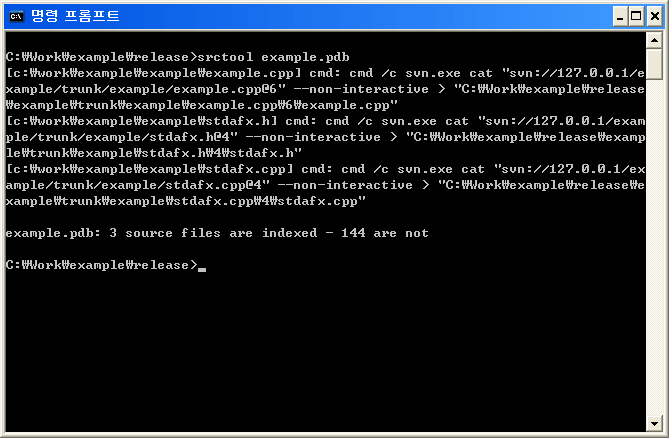 C:\Work\example>svnindex.cmd /debug /source=C:\Work\example /symbols=C:\Work\example\release