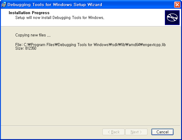 Debugging Tools for Windows 파일 복사 화면이 나타납니다.