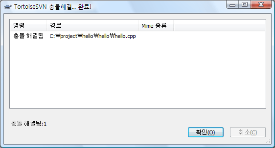 그림 15-11 TortoiseSVN 충돌 해결됨 실행 방법