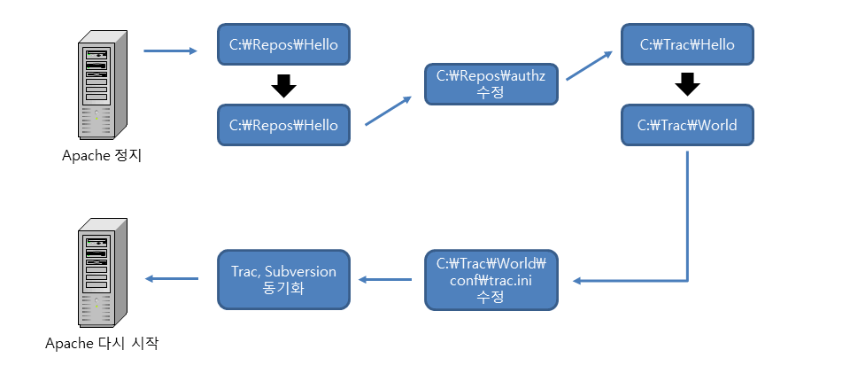 Trac 프로젝트와 저장소의 이름을 바꾸는 순서는 다음과 같습니다.