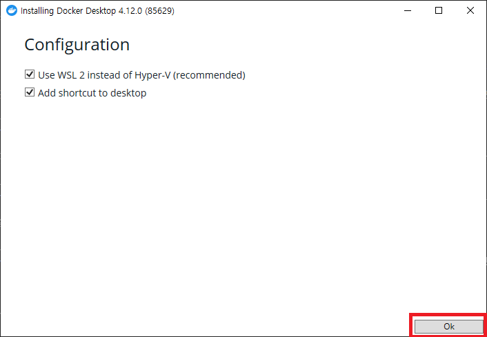 Docker Desktop 설치가 완료되었습니다.