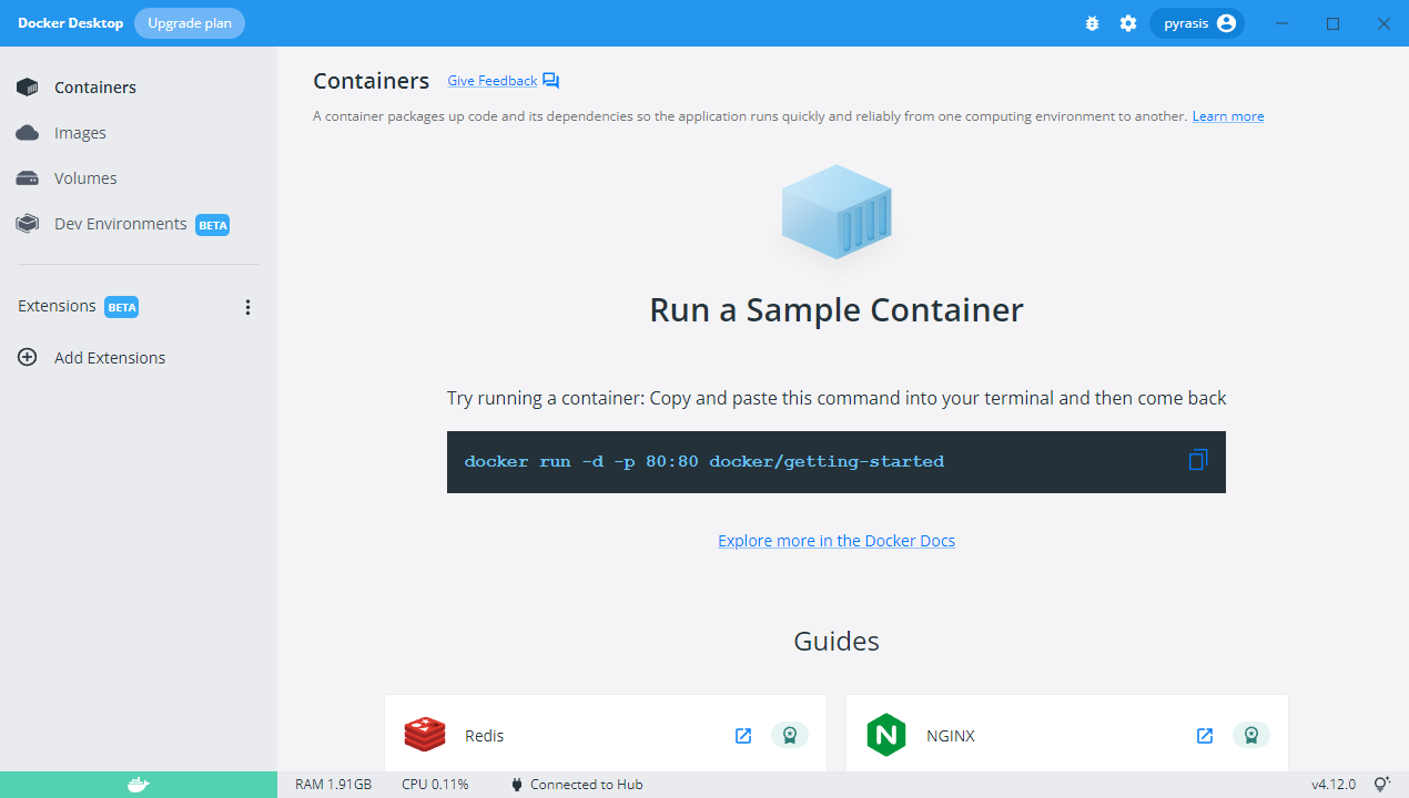설치가 완료되었습니다. 이제 PowerShell이나 명령 프롬프트에서 docker 명령을 실행할 수 있습니다.