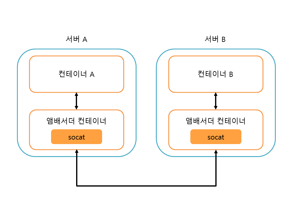 앞에서 설명한 --link 옵션은 같은 서버의 컨테이너끼리 연결하는 옵션입니다. 이번에는 앰배서더 컨테이너(Ambassador Container)라는 것을 이용하여 다른 서버에 있는 컨테이너에 연결해보겠습니다.