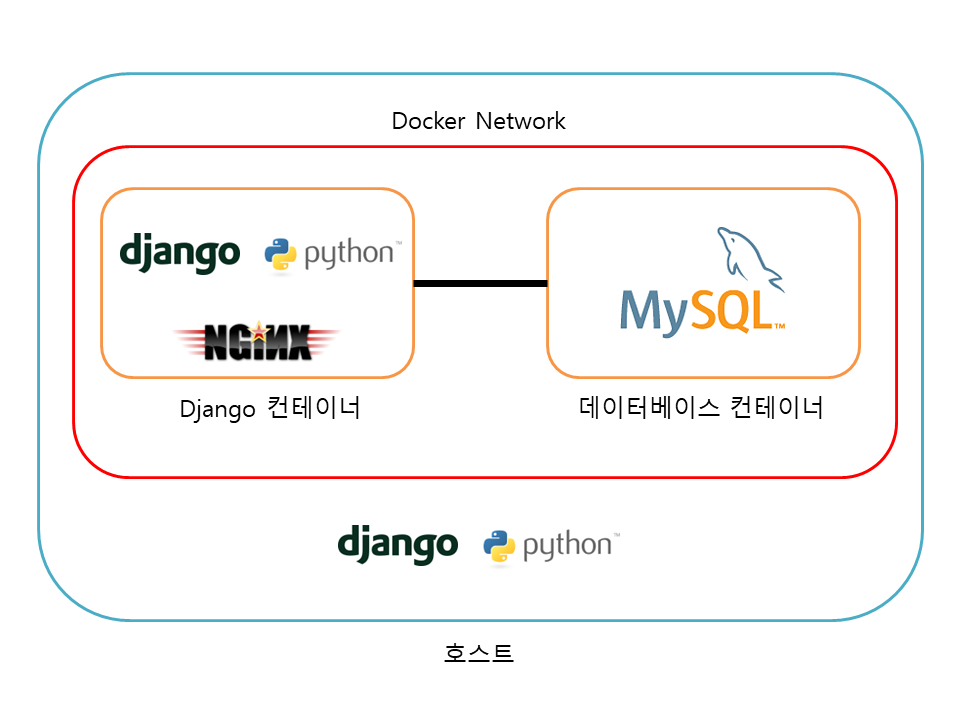 Django 컨테이너에서 데이터베이스 컨테이너를 사용할 수 있도록 docker network create 명령으로 네트워크를 생성하겠습니다.