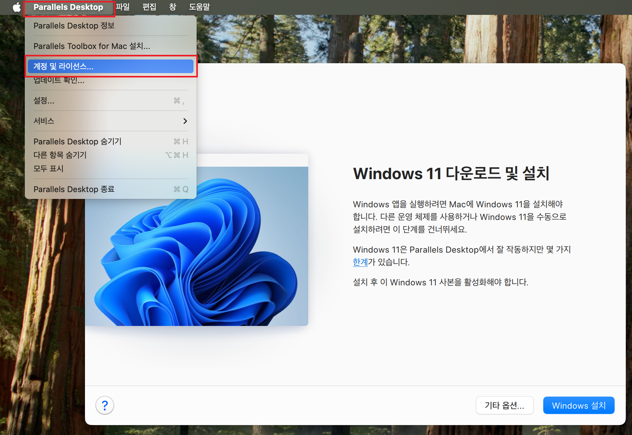 그림 6-1 Parallels Desktop - 계정 및 라이선스...