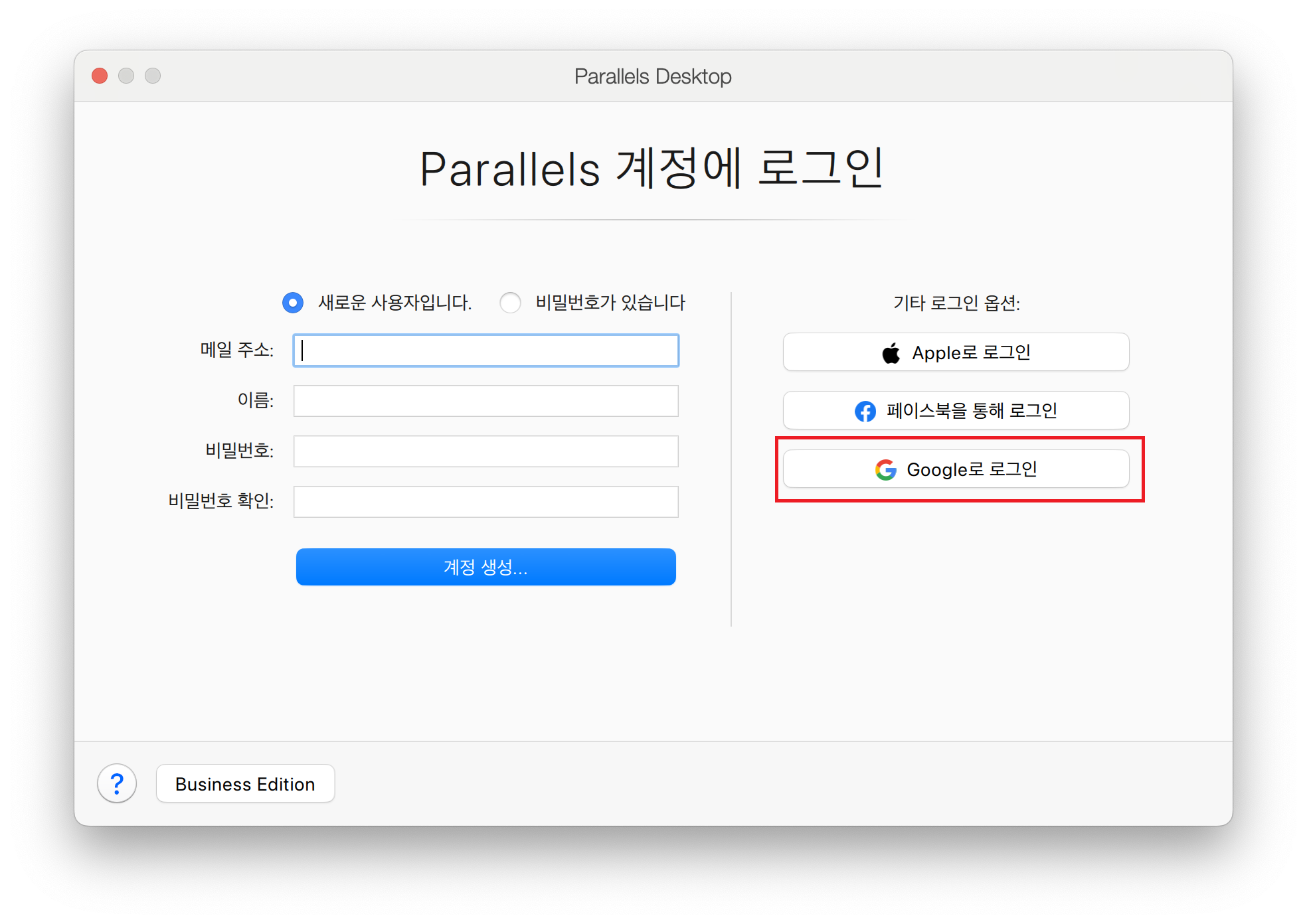 그림 6-2 Parallels 계정에 로그인