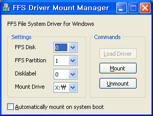 FFS File System Driver for Windows 0.1.2 Release 2004.09.09 [07:37 pm]
