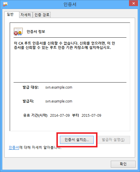 인증서 설치 버튼을 클릭합니다.