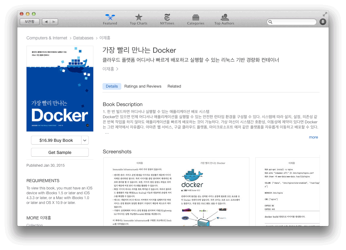 iBooks 스토어에서 "가장 빨리 만나는 Docker" 검색